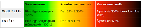 | 70’ | Exercice récapitulatif « moulitête » : exercer les devoirs de l’assureur et du grimpeur : Les participants s’exercent au départ de voie et à mettre en place une méthode de réduction de poids (appareil, 45° ou 90°), ainsi qu’au contrôle du partenaire systématique. L’assureur s’exerce encore à donner du mou et ravaler en rajoutant le comportement, y compris le départ de voie. L’instructeur insiste sur le risque de la corde derrière la jambe : corde de côté jusqu’à la 2ème dégaine et pas derrière la jambe durant la grimpe (retournement possible) | Sur le mur d’escalade, par cordées de 3, avec assurage supplémentaire en moulinette Attention à bien clarifier les rôles : c’est l’assureur moulinette qui sécurise le grimpeur. Communiquer pour la descente Insister sur le contrôle du partenaire systématique |