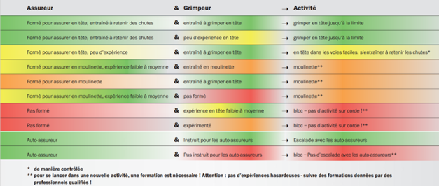 - Ils connaissent également les limites de leurs compétences pour les activités auxquelles ils sont formés et savent qu’il s’agit de pratiquer davantage pour gagner en assurance avant de se former pour l’escalade en tête.